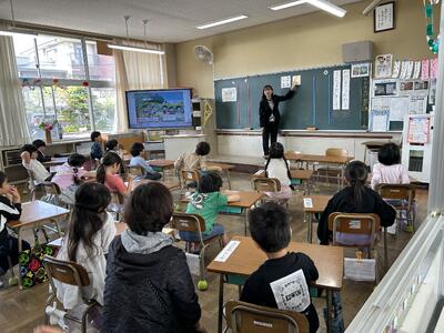 昼休みに1年生を対象にお話大好きの会による読み聞かせが行われました。上手な語り口調に子どもたちは魅了され、読み聞かせを楽しむ様子が見られました。