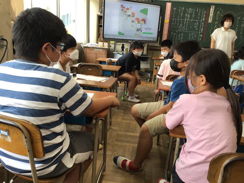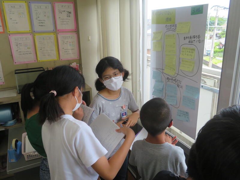 みんなの前で、自分の考えを発表します。友達のいろいろな考えを聞くことができました。