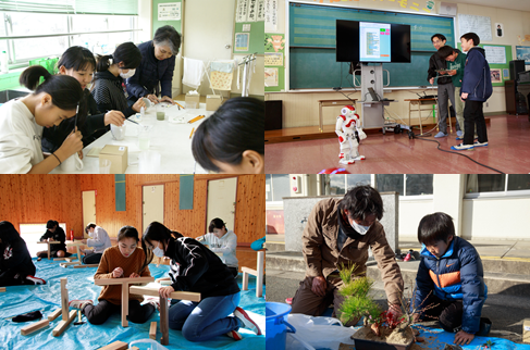 陶芸、ロボット、いす作り、造園のグループに分かれて、ものづくり体験教室を行いました。ゲストティーチャーの方にご指導をいただきながら、試行錯誤しながら、楽しく活動していました。