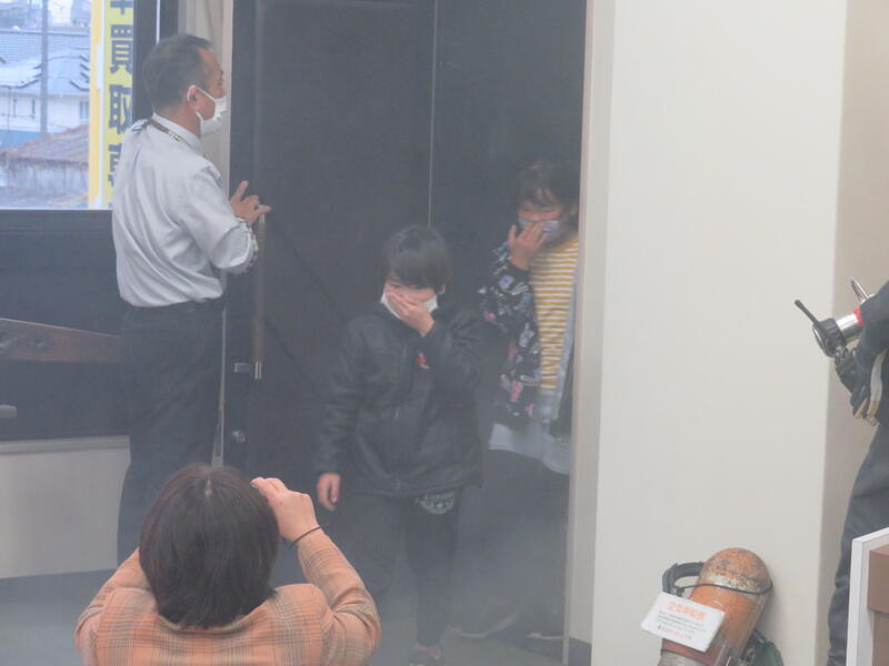 火災が発生した際に煙の中を避難する疑似体験もしました。