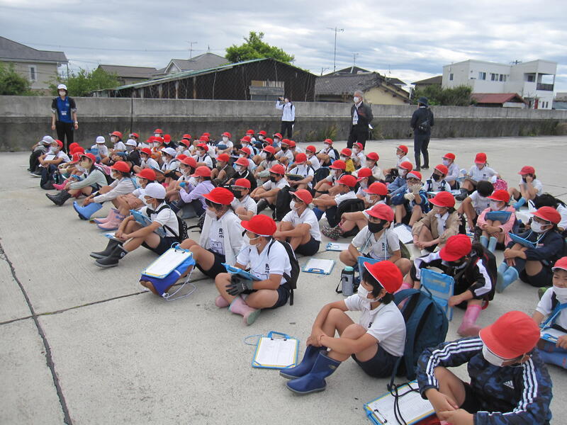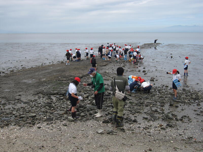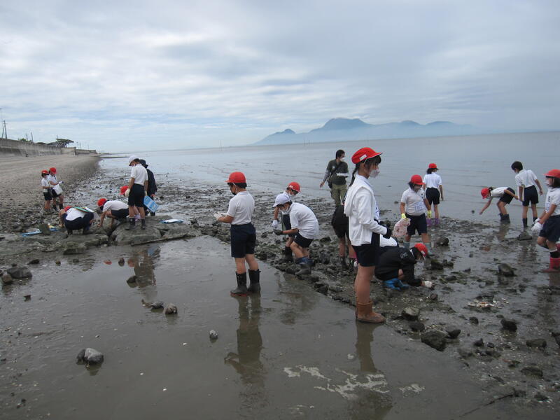 干潟に入って、干潟にいる生きものの観察をしました。いろいろな生き物がいてとても楽しかったようでした。