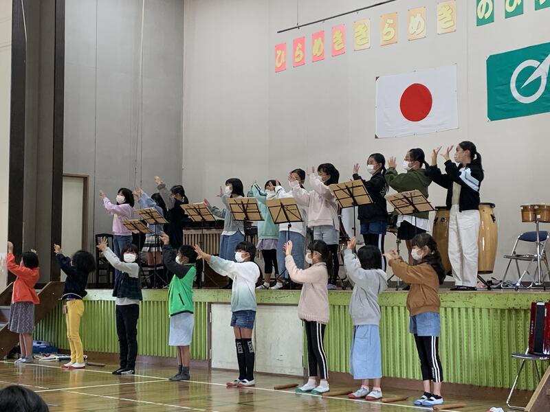 「虹」を手話をしながら歌いました。みんな知っている歌だったので、まねして歌っていました。