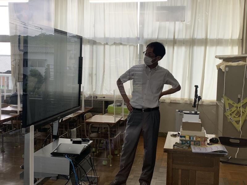 難しい円の勉強です。黒板と電子黒板を映しながらの授業でした。