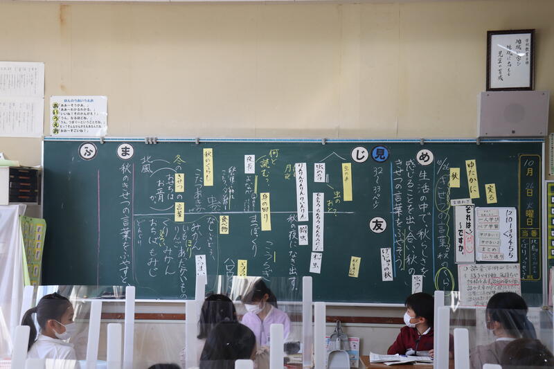 「生活の中で秋らしさを感じることを出し合い秋の季節の言葉をふやそう。」というめあてで学習が進められました。