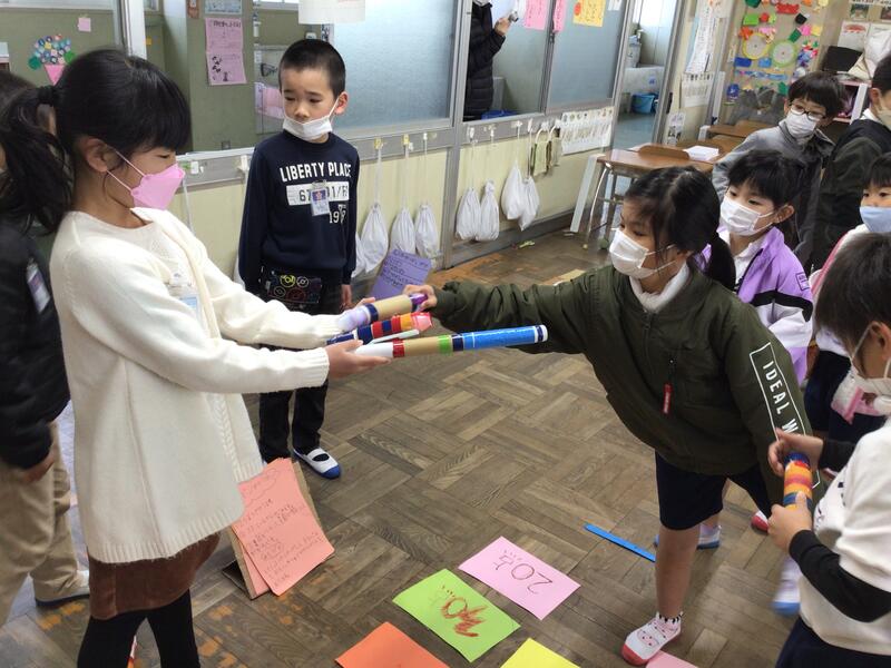 1年生を招待するために、おもちゃ作りを頑張りました。