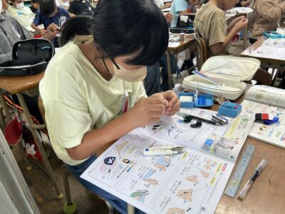 5年生から始まった裁縫の学習。今日は糸通しに挑戦です。初めての作業に苦戦中です。
