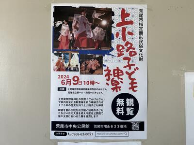廊下に「子ども神楽」のポスターが掲示してありました。本校の子どもも出演する催しです。発表をがんばってほしいと思います。