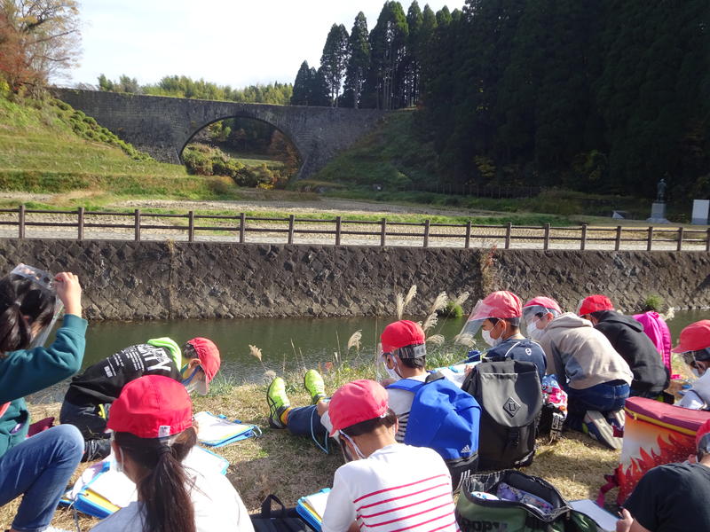 11月18日(水)に通潤橋へ見学旅行に出かけました。社会科の学習で通潤橋について学習をしています。実際に見ることで、教科書では学ぶことができないことを学習することができました。通潤橋からの放水も見学することができ、子どもたちの歓声が聞かれました。また一つ、思い出ができました。明日からの学習でしっかりまとめていきたいと思います。
