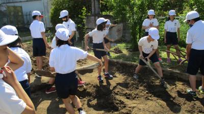 5年生が畑の半分を掘っていました。