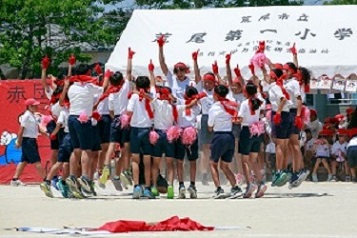 今年の運動会のテーマは「最後まで笑顔で協力し 喜び分かち合え」です。みんな準備や応援、競技で協力し、とてもいい表情をしていました。