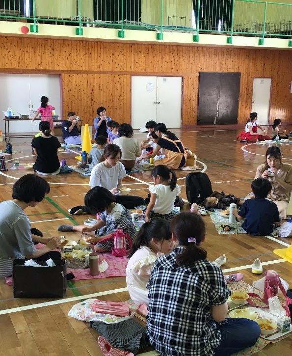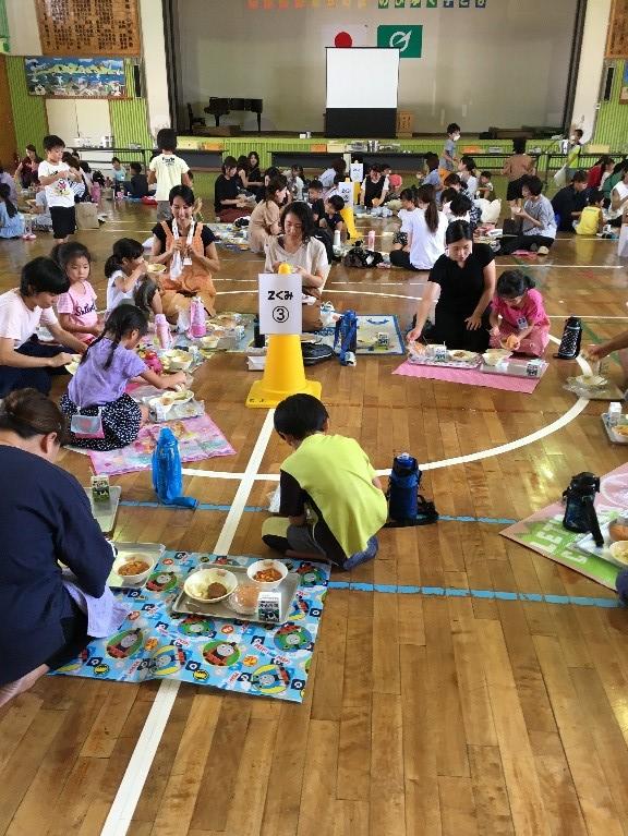 後半は、保護者の方と一緒に給食をおいしく食べました。