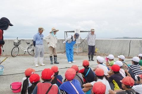 7月15日(水)に、まじゃく釣り体験を行いました。総合的な学習の時間の授業の一つとしての活動です。まじゃく釣りの名人さんにまじゃくの釣り方を教えていただいて体験をしました。初めての体験だった児童もいて、動く筆にそわそわしながら、待っていた子どもたちでした。なかなか釣るのは難しかったですが、楽しく体験することができました。ふるさとの生き物に触れるよい機会となりました。