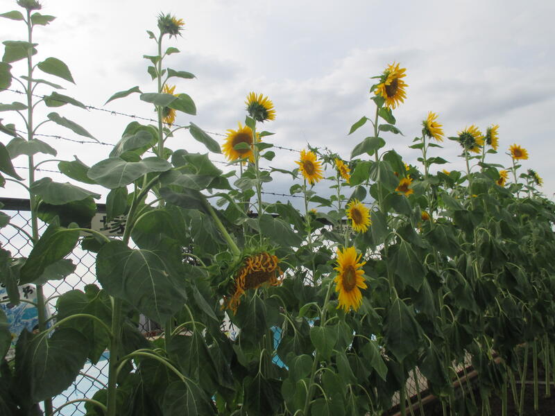 ★太陽に向かって咲くひまわりに、大喜びの子どもたちでした。