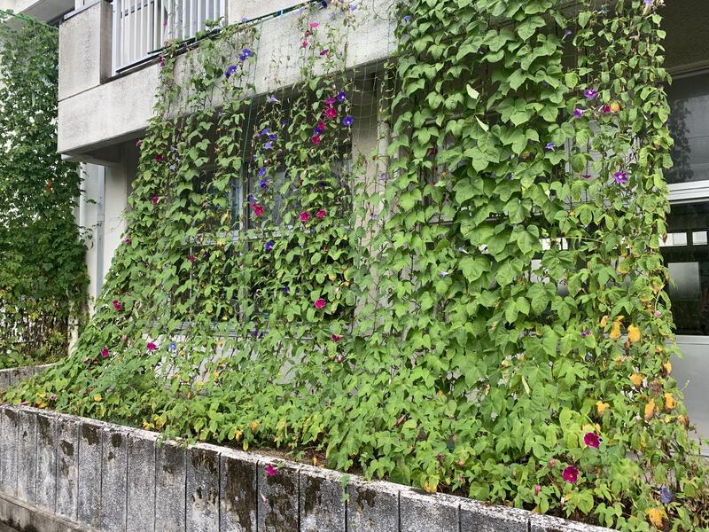 ★一年生教室の前の学級園は、緑のカーテンがきれいです。