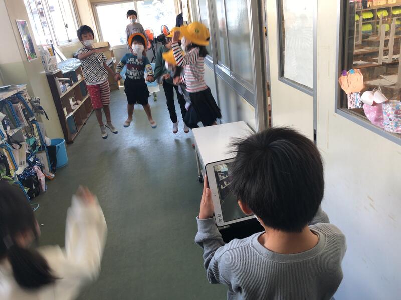 タブレットで撮影して、授業の最後には「劇場版くじらぐも」として上映し、みんなで鑑賞会をします。