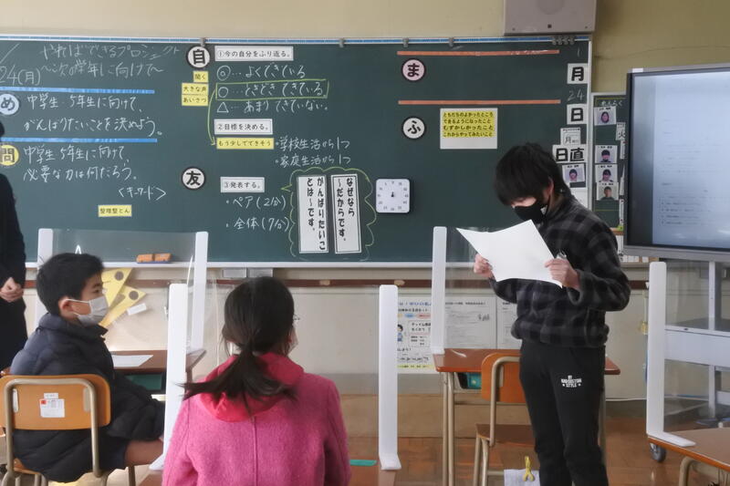 「中学生・5年生に向けて頑張りたいことを決めよう。」というめあてで学習が進められました。