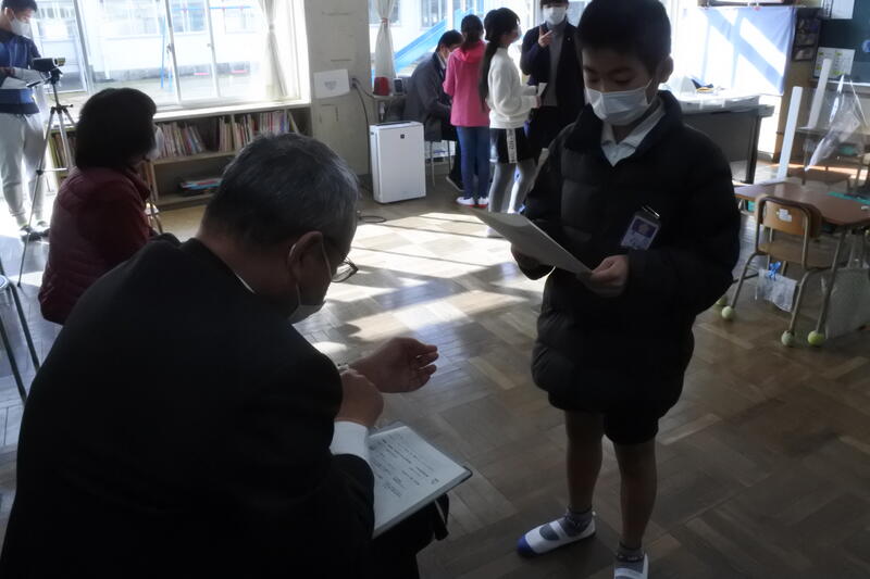自分の目標を友達の前で発表しました。緊張しながらも頑張っていました。