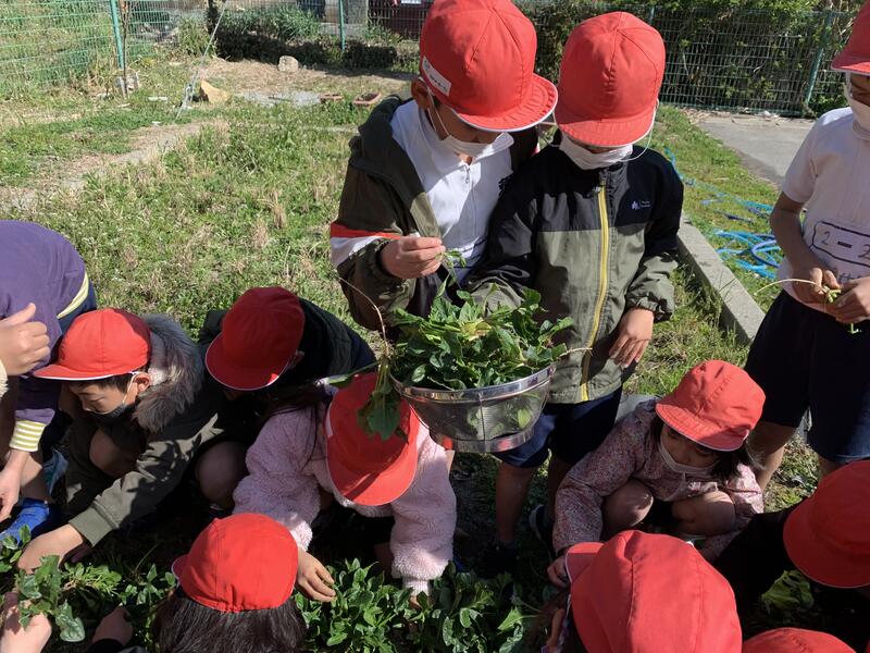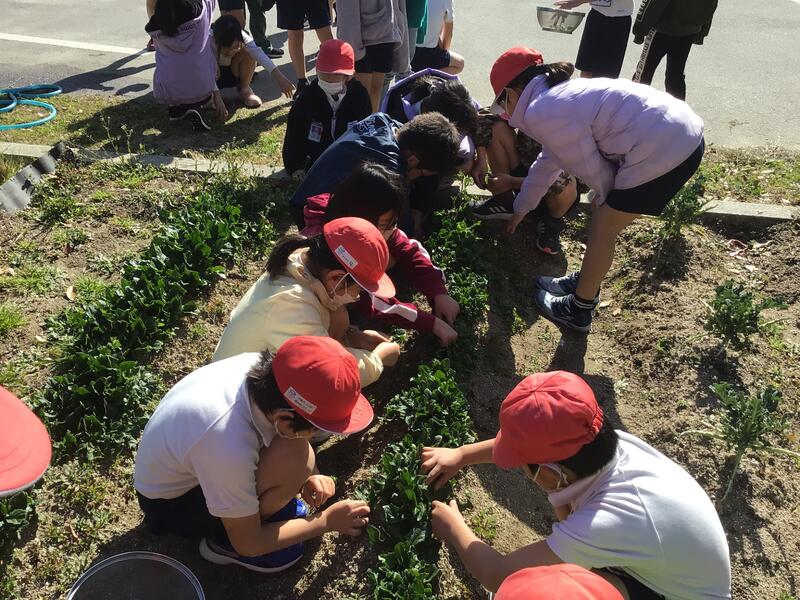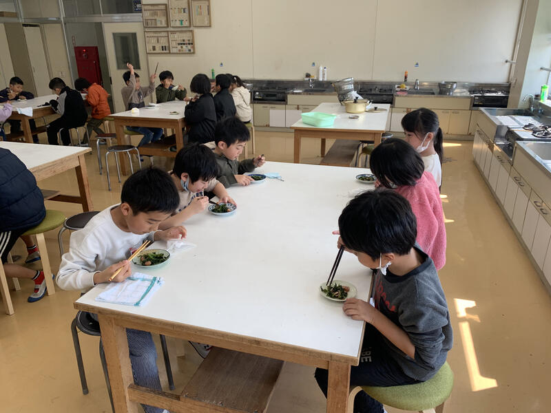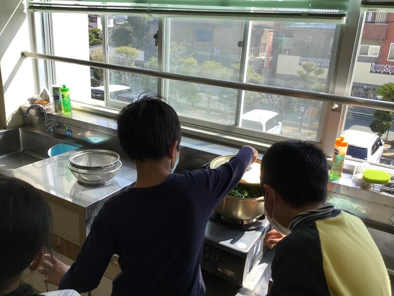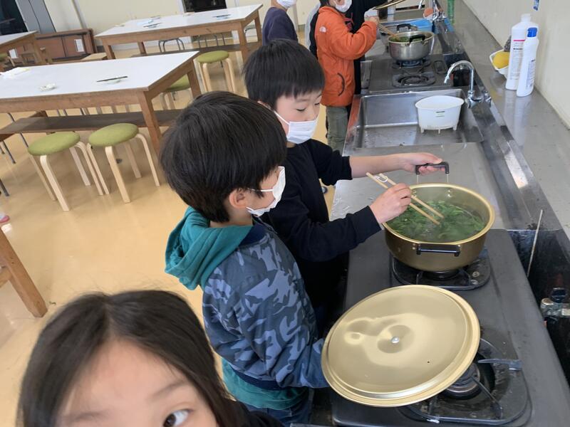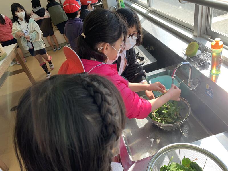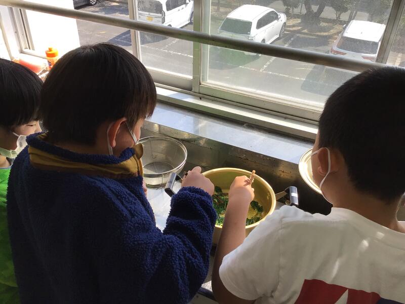 ★2年生が、ほうれん草パーティをしました。11月から育てていたほうれん草を収穫して、料理して食べました!