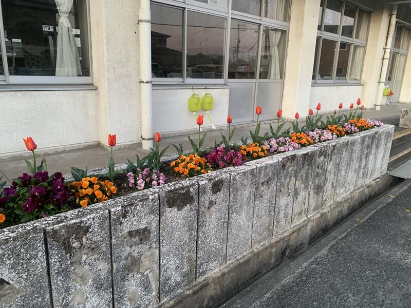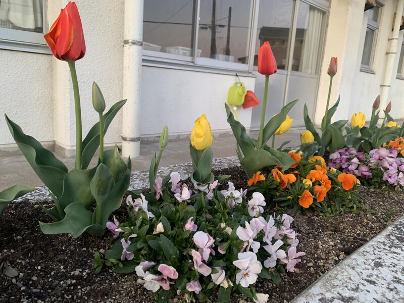★一年生教室の前の花壇にきれいな花が咲きました。