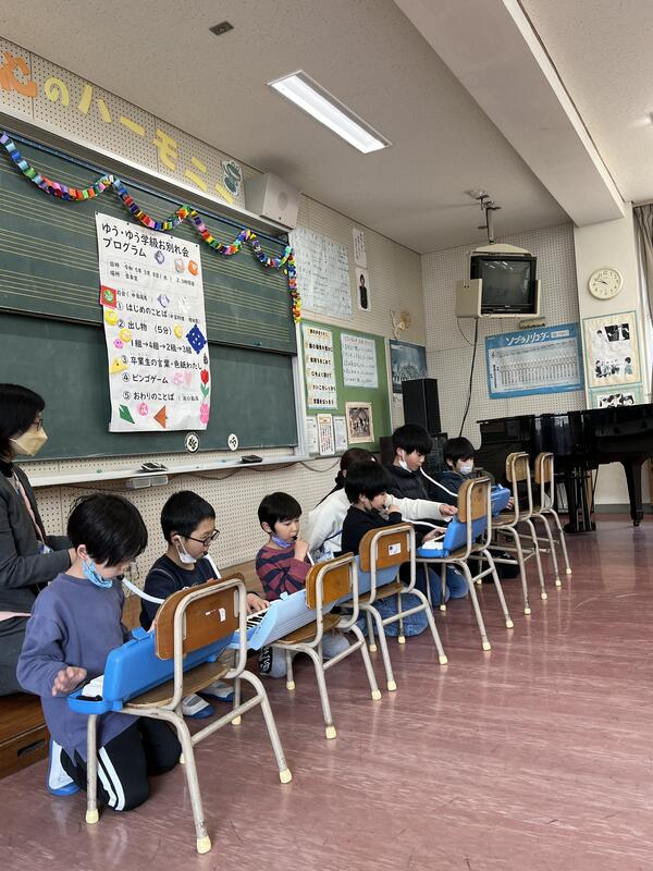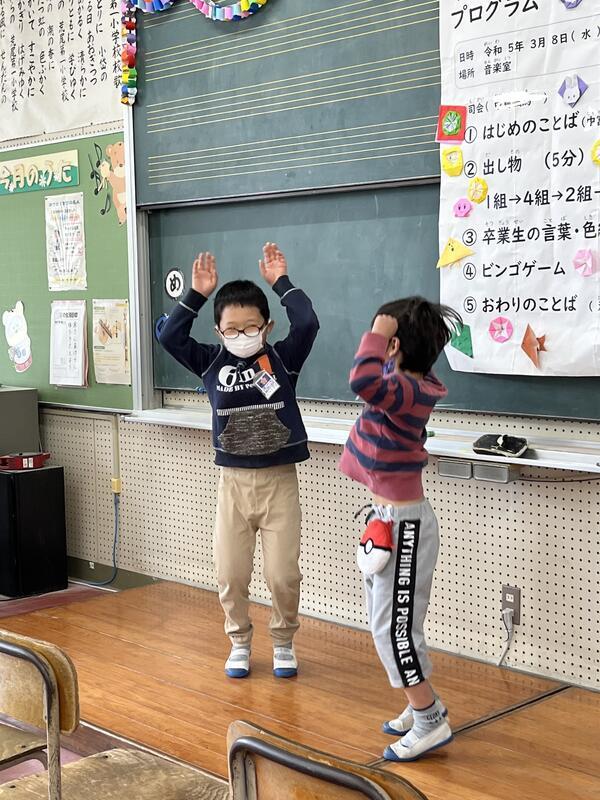 各クラスから、出し物がありました。演奏や歌などを6年生に贈りました。