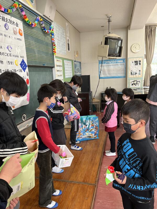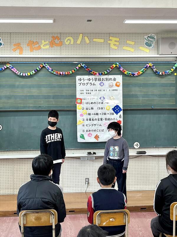 お別れ会を企画してくれた在校生の皆さんに、6年生からすてきなプレゼントが贈られました。