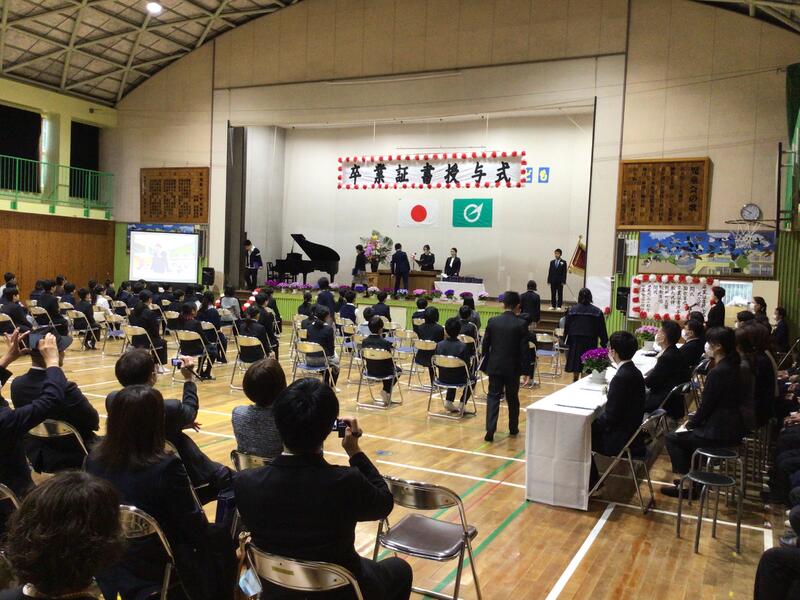 担任の先生に名前を呼ばれ、校長先生から卒業証書を受け取りました。