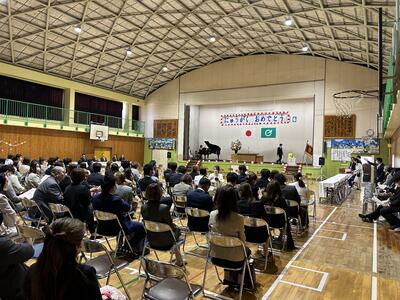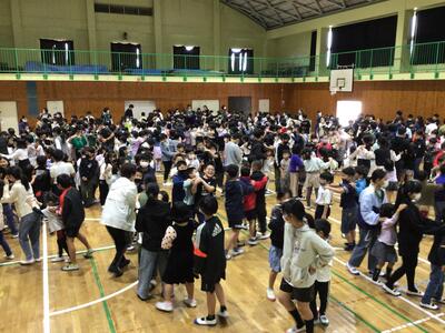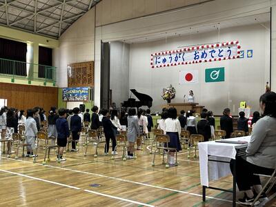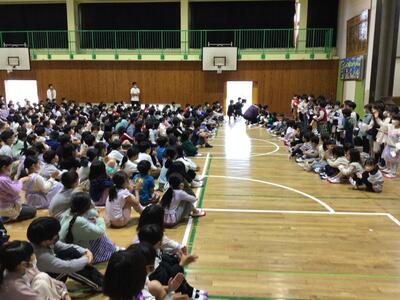 その後、全校児童で「じゃんけん列車」をしたりして、みんなで1年生の入学を祝いました。