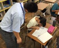 事前に申し込みをした児童が持参した問題集や習字を協議会の方々や地域の中学生、高校生から教えてもらっていました。