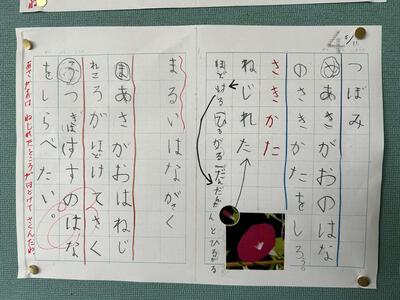 一年生の廊下にノートが掲示してありました。上手に書けています。