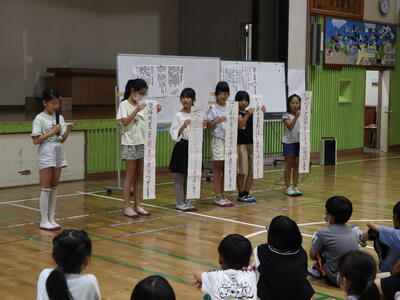 校内人権集会を低中高別に行いました。各学級でいじめや差別について考えたことを作文にして、各学級の代表者が発表をしました。