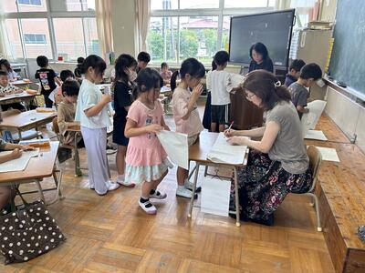 今年度最初の丸付けボランティアを行いました。10名の協力がありました。〇をつけてもらった子どもたちは、とてもうれしそうでした。