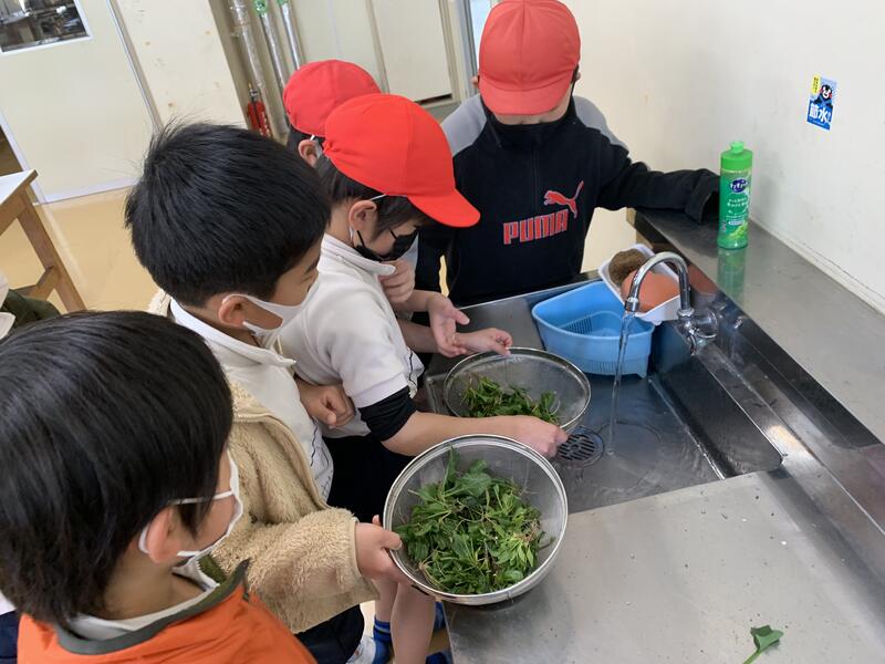 ★2年生が、ほうれん草パーティをしました。11月から育てていたほうれん草を収穫して、料理して食べました!