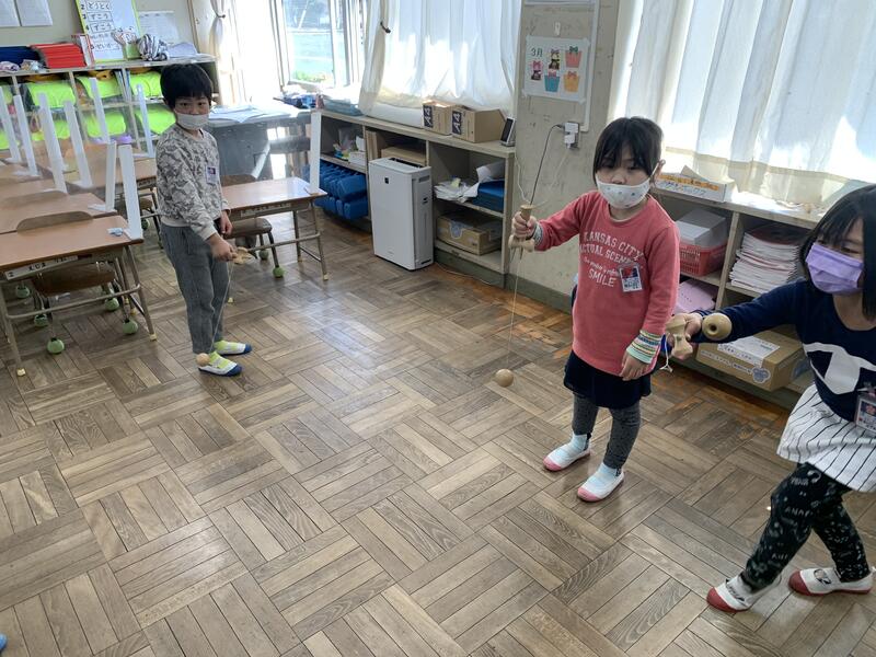 ★どの昔遊びもとても難しかったようですが、何回もチャレンジして楽しんでいました。