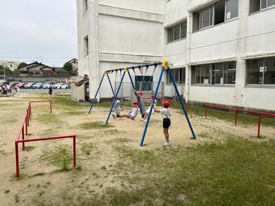 遊具を使って、楽しそうに遊ぶ子どもたちの姿が見られます。