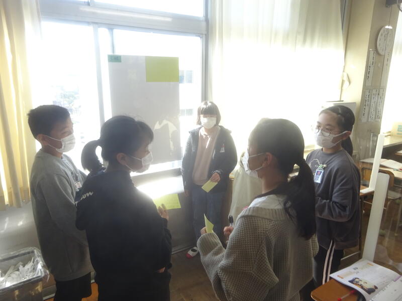 コロナ渦なのでパーテーションごしですが、話し合いをして考えを深めていました。