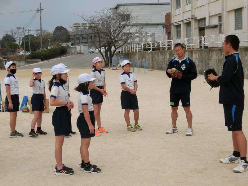 有明高校野球部の生徒さんが、授業の一環として4年生を対象にティーボールの指導をしていただきました。子どもたちも生き生きと活動し、笑顔が溢れる素敵な時間でした。
