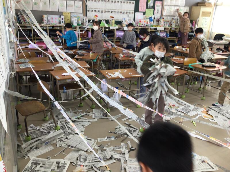 2年生は図工で想像を膨らませながら、楽しく作品を作っていました。