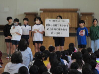 運動会の結団式を行いました。応援団の言葉を聞き、運動会に向けて、各団とも徐々に気持ちが高まっていく様子が見られました。