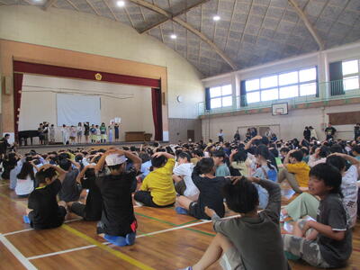 本日、夏休み前集会を行いました。校長先生からは夏休みに頑張ってほしいことについて話がありました。39日間の夏休み、ぜひ充実した時間を過ごしてほしいと思います。そして、8月27日に元気な姿を見せてほしいと思います。約3か月半、大変お世話になりました。