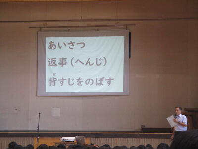 全校集会を行いました。校長先生からは運動会を終えて、更に当たり前をレベルアップする姿を望んでいること、生徒指導担当から新しいプロジェクト「タンプロ」についての話がありました。