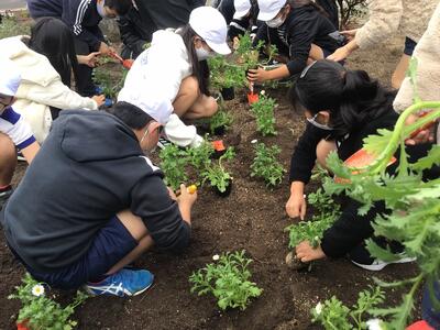 5年生が「花のみちプロジェクト」で、たくさんの花を植えました。校区の美化のために貢献する姿に大変感心しました。校区がますます明るくなるといいですね。