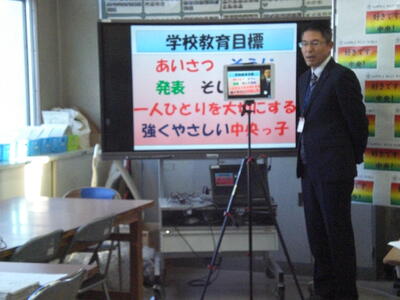 生活委員会による発表がありました。横断歩道の渡り方や職員室の入り方など、動画を流しながら発表していました。職員室への入り方がもっとよくなりました。