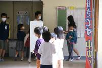 5年生は、新入学生の子どもたちをしっかりと健康診断の教室まで連れて行ってくれました。