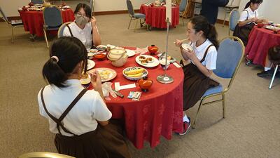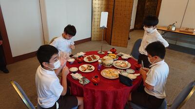 ホテルに着いて入館式の後、部屋に荷物を置いて夕食会場へ。色鮮やかなバイキング料理に、子どもたちも大喜び。思い思いの料理を何度も取りに行く姿が見られました。