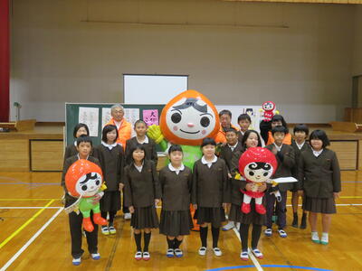 4~6年生は、「よーいドン!」というお話を視聴した後、一人一人のちがいを認め合い協力し合うこと等の大切さについて話し合いました。自分の考えを発表する場では、たくさんの人が手を挙げていました。最後には「人権まもるくん」が登場し、一緒に写真撮影をしました。ある子は、「今日学んだことを日頃の学校生活に活かしたい」と決意を述べていました。