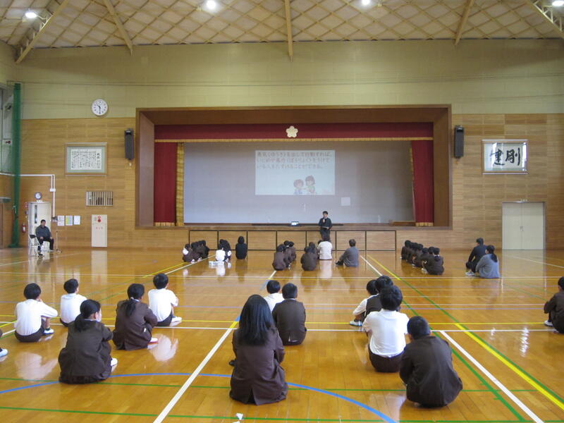 いじめ・暴力についての全校集会 2年生と5年生が集会を聞いて思った事・感じたことを発表してくれました。 |