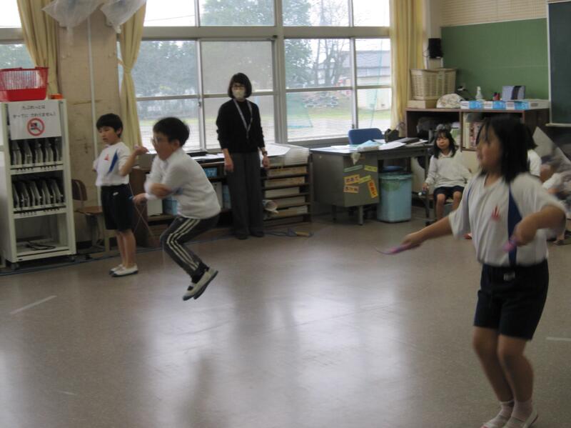 1年生 できるようになったよ リズムよく前跳びや交差跳びを披露しました |