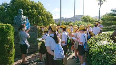グラバー園の見学後は、子どもたちが楽しみにしていたショッピングです。子どもたちは商品をじっくり見ながら品定めしていました。保護者の皆様は、お子様がどんなものを選んだか楽しみにして帰りをお待ちください。