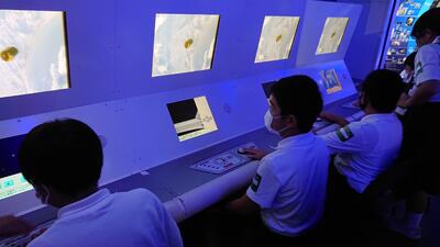 修学旅行団は、佐賀県立宇宙科学館で、色々なブースで体験しながら科学の不思議さや面白さを感じました。いつもは混雑して行列ができるアトラクションも、今日はほぼ有佐小学校の貸し切り状態でしたので、たくさんの体験ができました。