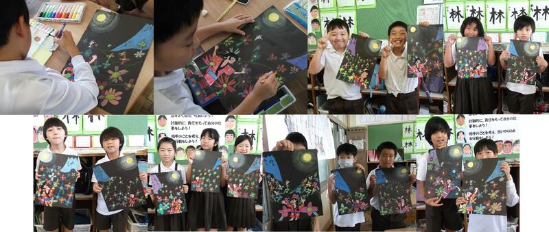 本日(7/2)、4年生の図画工作の時間にお邪魔しました。素敵な工夫を凝らした読書感想画が出来上がっていました。子供たちのスキルが上がったことでしょう。今後、4年生の教室にも花咲き山のようにたくさんの優しい花が咲くことを願っています。